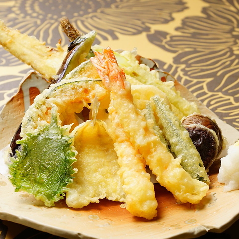 創作天ぷらとワインや地酒のマリアージュを楽しめるなんばの居酒屋はココ!その日仕入れた海鮮・野菜を使用した、様々な種類の天ぷらを一品150円(税込165円)~ご用意しております!