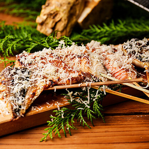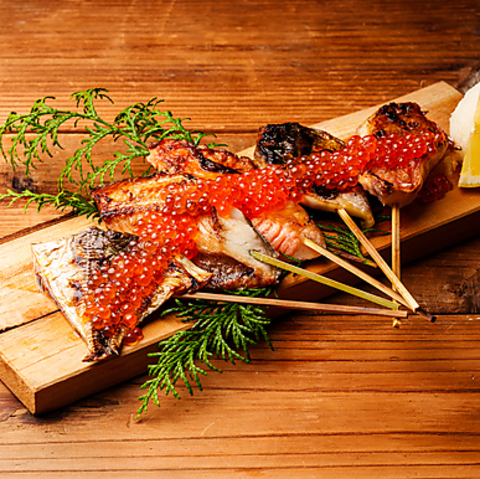 豊洲市場で仕入れた新鮮な本マグロの刺盛りを始め、炭火焼き大トロサーモンとイクラの親子焼き串や本日の特製漬け魚串山わさび添えなど…"炙処 火ノ膳"の人気メニューが全8品楽しめる贅沢なコース。2時間飲み放題付きで各種ご宴会にオススメです!