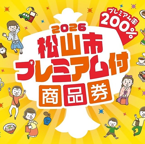 「松山市プレミアム付商品券」に参加登録しておりますのでご飲食代でのお支払いにご利用いただけます。