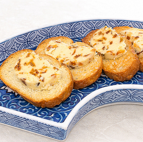 完熟したイチジクをセミドライに。濃厚バターにはちみつと隠し味の色々が入った濃厚バター。香ばしいバゲットとの相性◎。ワインに超絶合う逸品。
