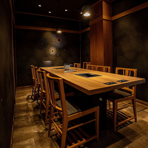 | 個室 | 4名様×1 | 【個室|4名様まで】ビジネスシーンにも相応しい、落ち着きと上質さを兼ね備えた4名様向け個室もございます。取引先をもてなす接待や少人数でのご宴会に最適。ゆったりと寛ぎながら当店自慢の本格焼肉を心ゆくまでお楽しみください。 |