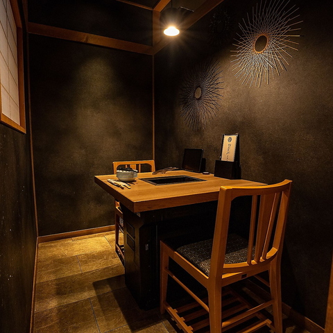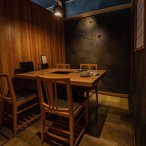 【個室|4名様まで】ビジネスシーンにも相応しい、落ち着きと上質さを兼ね備えた4名様向け個室もございます。取引先をもてなす接待や少人数でのご宴会に最適。ゆったりと寛ぎながら当店自慢の本格焼肉を心ゆくまでお楽しみください。