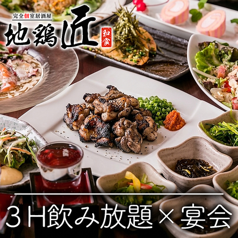 【本格地鶏を嗜む】日本橋駅徒歩1分♪3時間飲み放題×九州地鶏⇒4,500円~!宴会や女子会、合コンや接待◎