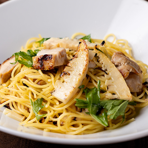 【月替わり季節メニュー】4月のメニューは焼筍と塩鶏の柚子胡椒ポン酢パスタ