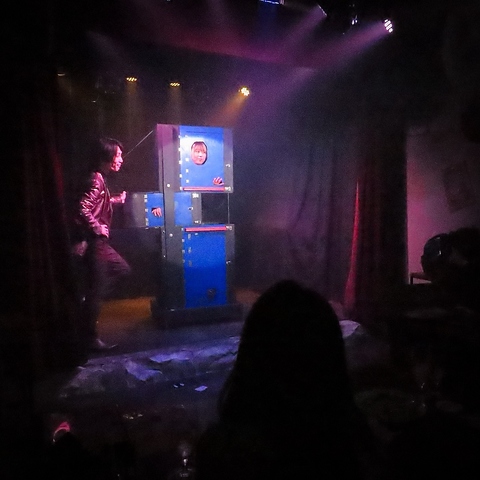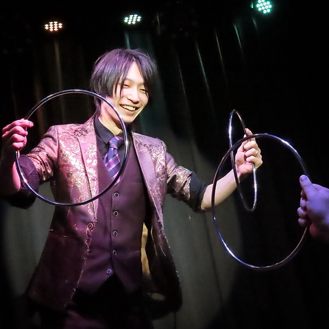 臨場感あふれるステージショー◎扉を開けると、そこには非日常が広がる雰囲気抜群のステージが!当店では、間近に驚きを体験できるテーブルマジックはもちろん、迫力満点のステージショーもお楽しみいただけます。美味しいお食事やお酒を片手に、視線を釘付けにするエンターテインメントの数々を堪能してください。