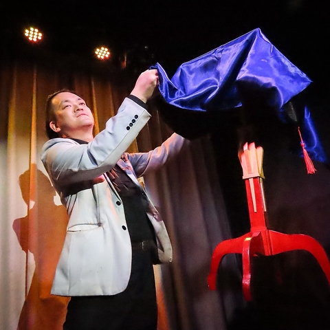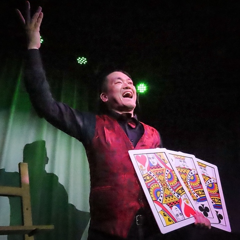 日常の喧騒を忘れて、今日はお腹の底から大いに笑って過ごしませんか?本格的なステージと最新の音響照明設備を完備。至近距離で驚きを体験できるテーブルマジックはもちろん、光と音が交錯するダイナミックなステージショーまで、バリエーション豊かな演出をお楽しみいただけます。土日祝日はお昼の12時からショーが開演しています♪