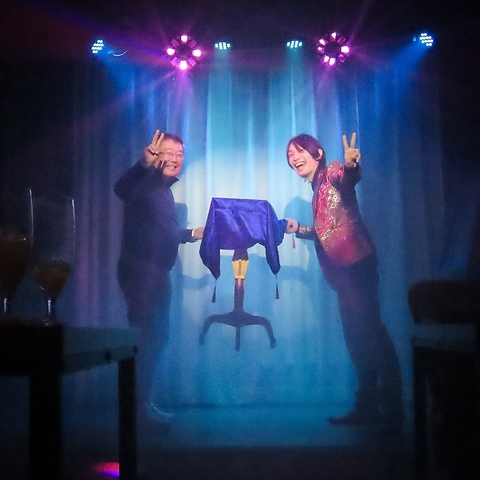 店内はステージ・音響・照明設備を完備しており、マジックの不思議な世界観をより一層引き立てます◎パーティーや記念日など、大人数でのイベントでも主役が映える最高の環境です♪マジシャンとの距離が近いアットホームな雰囲気の中で、忘れられない思い出を作りましょう◎