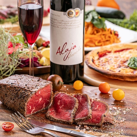 自家製ビーフステーキ!肉汁たっぷりのジューシーな味わいに肉厚なお肉が食欲増進!人気過ぎてリピーターが続出のお料理ですので、お早めのご注文をお願いいたします♪種類豊富なフルーツカクテルやサングリア、赤・白、ハイボール、サワーなどが飲み放題という最強コスパの飲み放題が爆誕!もちろん、当日予約もOKです!お気軽にお問い合わせ下さい