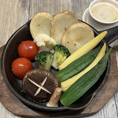 若鶏を豪快に丸揚げにした『大山鶏半身揚げ』は、看板メニューにして人気NO.1の絶品!表面はサクサク、中のお肉はふっくらジューシーで、1人ひと皿ペロリと平らげてしまいそう。もも肉、むね肉、手羽先といったように、さまざまな部位を一度に味わえるのも魅力です。お好みで3種類のハーブ塩を使い分けてどうぞ。