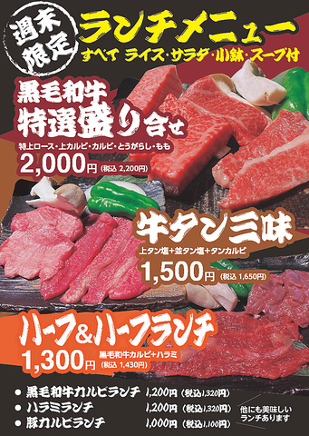 黒毛和牛特選盛り合わせや牛タン三昧、お得なランチなど、上質なお肉をリーズナブルな価格で堪能できます。