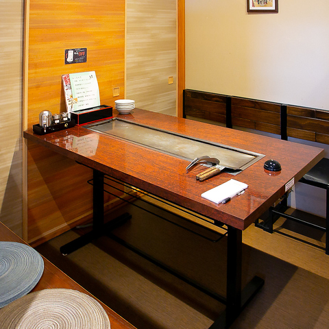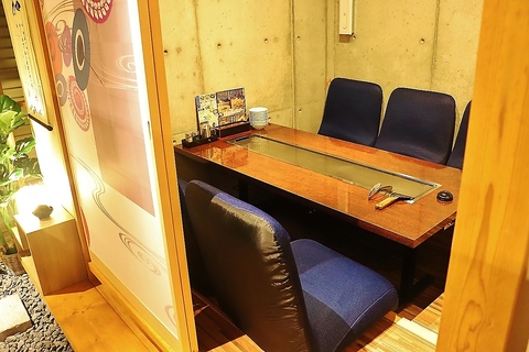 最大40名様まで対応可能な広々としたお座敷をご用意。和傘の意匠を凝らした上質な和の空間は、団体様でのご宴会や打ち上げに最適です◎ゆったりと寛げる座椅子も完備し、鉄板を囲んでの会話も弾みます。スムーズな動線で料理やドリンクの提供も早く、幹事様も安心!大人数での一体感ある宴会をしっかりサポートします。