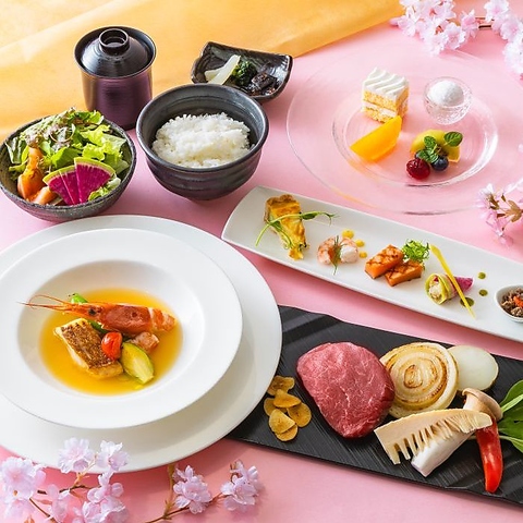 季節替わりの魚介と黒毛和牛の鉄板焼が楽しめる人気のディナーコース