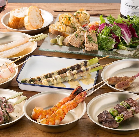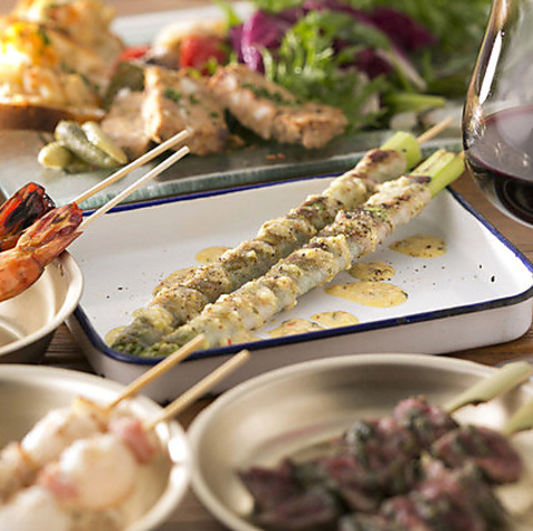 皆様に少しずつ多彩な味をお届けすることを大切に、一本ずつ丁寧に仕上げるピンチョスが自慢です。オリーブオイルを使用し香り高く仕上げており、お酒に合う串焼き風もご用意しております。広島県産の子持ちコンニャクは独特の食感が魅力の希少な逸品。自家製バジルソースが香るラム串とともに、贅沢な時間をお楽しみください。