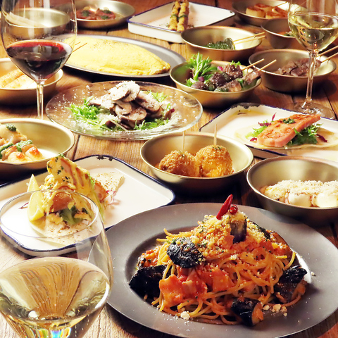 旬の味覚を凝縮した本日のおまかせ前菜盛り合わせは、カルパッチョなど仕入れに合わせた内容でご提供いたします。グループに最適な通常サイズのほか、少人数向けのハーフサイズも選べるのが嬉しいポイントです。さらに、色々な種類を少しずつ楽しめるピンチョスを満喫できるコースもございます。シーンに合わせて自慢の料理をご堪能ください。