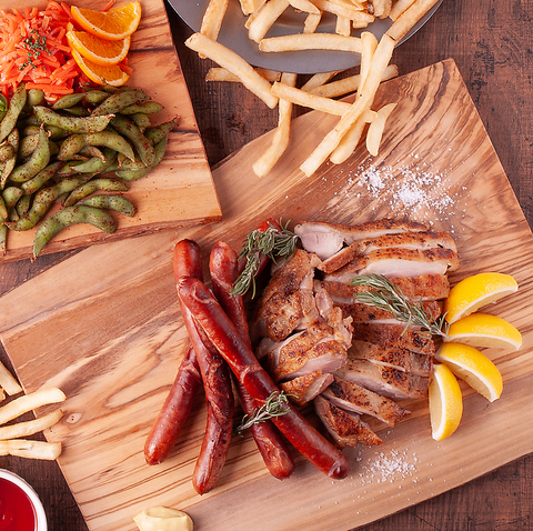グリルセットの他にも90分ポテト食べ放題やこだわりの前菜5種盛りなど大満足な内容!アツアツ揚げたてポテトが好きなだけ楽しめるから、みんなでワイワイ盛り上がること間違いなし。ドリンクと一緒に、ビアガーデンのマストアイテムです!