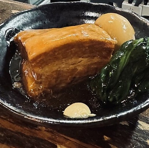 じっくり煮込んだ柔らかな豚の角煮は、口の中でとろける美味しさ。お酒との相性も抜群な、自慢の逸品です。