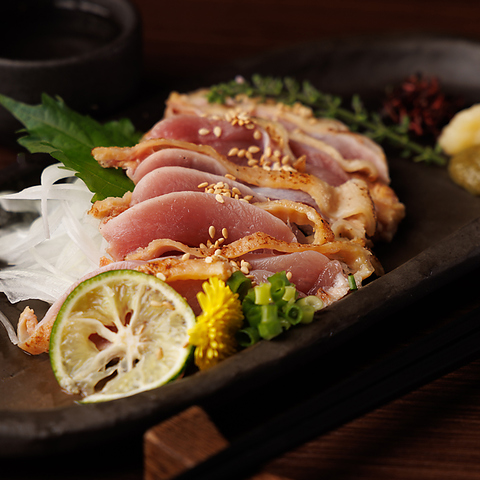 薩摩の大地で育まれた、鹿児島県の銘柄鶏「さつま知覧どり」を使用した、一品料理を豊富にご提供。中でも贅沢なタタキ2種盛りがお勧めです。まるで会席料理のような雅なひと時をお愉しみください。