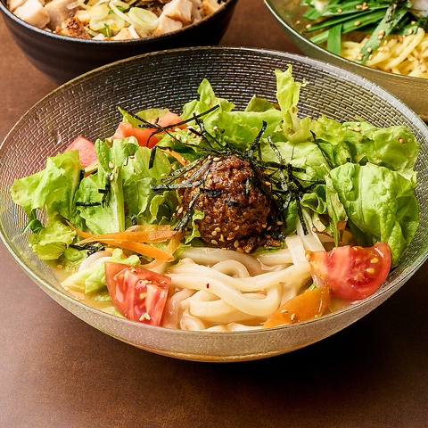 鶏ハムや牛すじ煮込みなどの人気メニューを中心に、丁寧に仕込んだ料理を少しずつお楽しみいただけるコースです。〆には冷やし胡麻担々うどんをご用意。お食事としても、お酒のお供としても程よいボリュームで、肩肘張らずに気軽に味わえるのが魅力です。