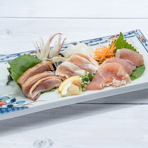 新鮮な鶏肉を使用したたたきはもも・むね・ささみの3種類をご用意。弾力のある歯ごたえと、ジューシーな鶏の旨味を存分にお楽しみ下さい。【中州 天神 春吉 福岡 おでん 焼き鳥 もつ鍋 水炊き 鍋 鶏 ハッピーアワー】