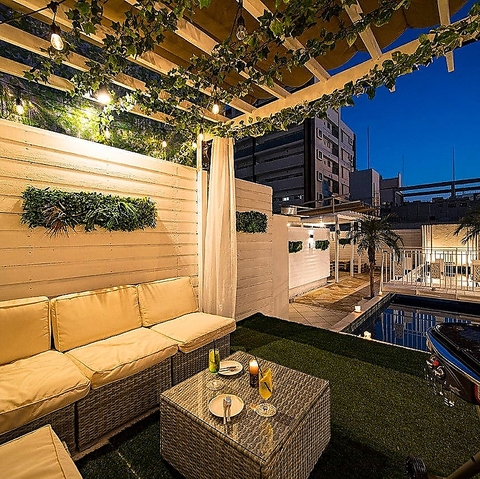 アメ村にプール!?と驚かれること間違いなしのプールサイドテラスで、手ぶらバーベキューが楽しめるプランをご用意!牛ロースやハラミを焼きながら、仲間と一緒に盛り上がりませんか?さらに、BBQプラン限定で90分飲み放題が+1,100円で付けられます!(通常は60分1,100円)コスパ抜群のビアガーデンをお楽しみください!