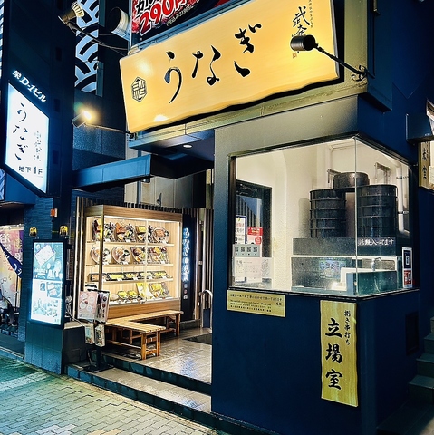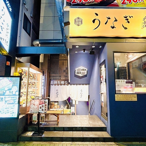 間口はコンパクトながら、店内は1名様から8名様まで対応。カウンター・個室・半個室・ソファー席を完備しています。店頭にはディスプレイを設置し、外からも見える鰻の立て場では、時間が合えば仕込みの様子もご覧いただけます。夜でも明るく、気軽に入りやすい一軒です。