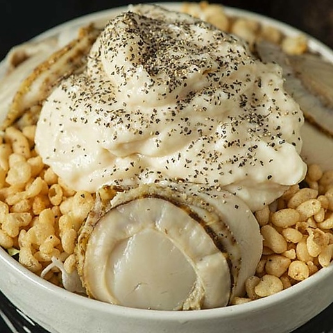 店長渾身の看板メニューがこちら!ジャンボサイズのホタテ貝柱が豪快に乗ったインパクト抜群の一品で、生地には特製のベシャメルソース(クリームソース)をブレンドしています!来店時にはぜひ注文してほしい逸品です!