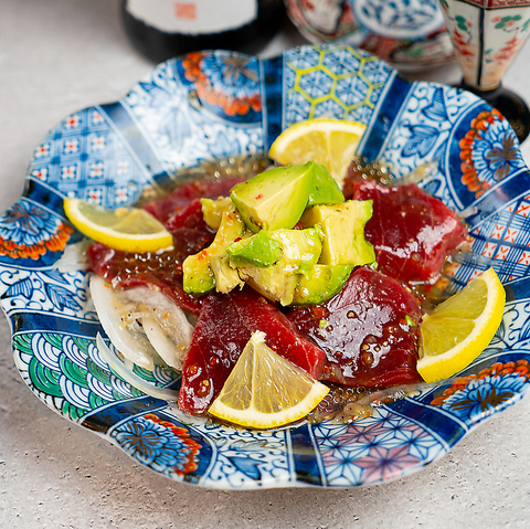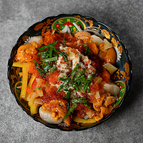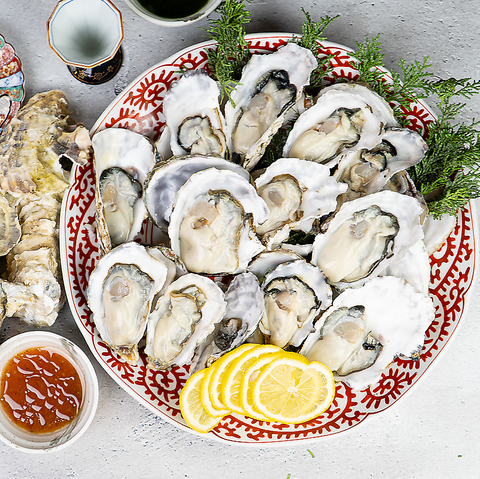 鰤、サーモン、鰆、真鯵、平目、大間の本鮪、生あんこう、鱈、金目鯛、甘鯛、牡蠣、雲丹、ほっき貝、みる貝、サザエ、赤海老、いくら、はまぐりなど、全国から届く海の幸はすべて、活魚や丸魚をその日のうちに捌き、旨みのピークを逃さずご提供しております。新鮮な魚介の本当の味を、ぜひ一皿ごとにお楽しみください。