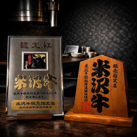 当店は米沢牛銘柄推進協議会認定「米沢牛販売指定店」「米沢牛取扱指定店」「米沢牛飲食提供店」の三つの資格を持つ、県南地方唯一の焼肉店です。厳格な基準を満たした正規店として、確かな品質の米沢牛のみをご提供。霜降りの美しさ、上質な脂の甘み、口の中でほどける柔らかな食感を、ぜひご体感ください。