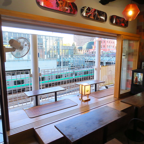 線路を見下ろすテラス席は開放感抜群。昼間も夜も特別な時間が過ごせます♪また、ペットとの同伴も可です◎