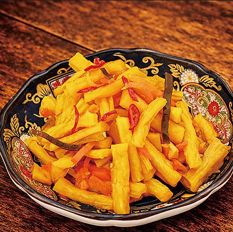 じっくり時間をかけて煮込んだ牛すじは、口の中でホロリととろける柔らかさ。出汁の効いた優しい醤油ベースのつゆが、素材の旨味を引き立てます。一口食べれば、ホッと一息つける安心の味。熱燗や本格焼酎と一緒に、心ゆくまでご堪能ください