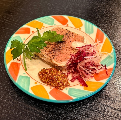 一皿でそれぞれ違う味が楽しめちゃう超贅沢で豪快なカルパッチョプレート♪ハルタに来たらぜひ食べて頂きたい一品★各鮮魚ごとに味付けが異なっており、ワクワクが止まらないプレートです!お酒との相性も抜群なので、ワインのお供にもオススメ♪