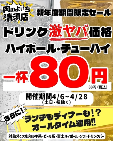 ハイボール、チューハイ1杯なんと80円!? お早めに!