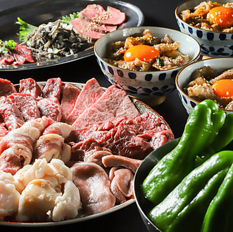 ・特上たん塩・しんしん片面炙り・本日の特選希少部位・炙りユッケボール・三茶ウルフ焼き・和牛コプチャン ※魔法の冷やし生ピーマン付き