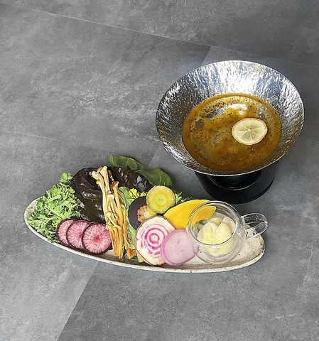 "当店の自慢のランチ!こだわりを持っている近隣の農家さんや生産者の方から仕入れて調理しております!質の良い野菜の美味しさを是非食べて感じて下さい!サラダビュッフェ・ドリンクバーも料金に含まれております。【鍋しゃぶ出汁】⇒レモンスパイス・バーニャカウダーより1種お選びください。"