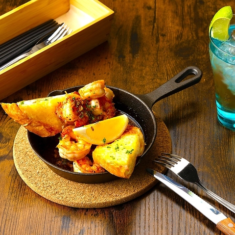 秘蔵レシピのガーリックバターソースでソテーしたやわらかいシュリンプと、香り立つガーリックブレッドの逸品です。ソースに良く絡めてお召し上がりください!バターとガーリックの香ばしい香りが食欲を刺激するので、お酒との相性も抜群◎