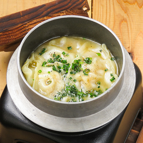 カリっとジューシーな餃子を召し上がれ!口当たりが良い香ばしさが癖になる一口餃子は人気のメニューです♪鍋×餃子をコンセプトに鶏100%使用し、長時間じっくり煮込んだ自家製濃厚鶏白湯スープ×みんな大好き餃子を組み合わせた博多の名物料理の「炊き餃子」もご用意☆
