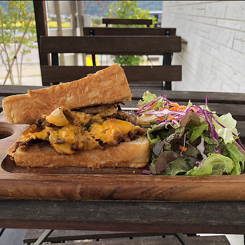 サーファーのシェフがつくるハワイアンメニュー。ランチは全てのメニューに週替わりの小皿2品、サラダ、ソフトドリンク、デザートが付きます。ドライカレーはプラス330円