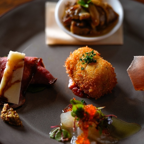 生ハムやフリットなど、お酒とも相性の良い料理もご用意。お手頃価格で楽しめるワインとともにご堪能あれ♪