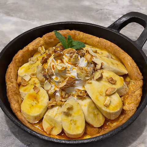 オーブンで焼き上げる、外はサクッと中はもっちりのドイツ風パンケーキ「ダッチベイビー」。当店ではおかず系3品・デザート系4品の全7種類をご用意。食事としても、カフェタイムのスイーツとしても楽しめる人気メニューです。