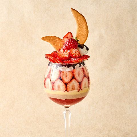 メリリーのパフェは、フルーツをたっぷりと入れるためパフェグラスがたっぷりサイズです◎また、スプーンですくう度にフルーツを召し上がれるように、そして大きめのサイズのパフェでも最後まで飽きのこないように、パティシエとパティシエールオリジナルのパフェ構成となっております♪