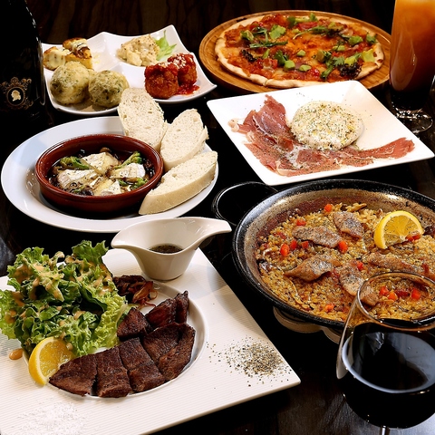 当店では仕入れ先、調理法までこだわった本格スペイン料理、イタリアンをリーズナブルにご提供。インスタ映え間違いなしのパエリア、ピザ、アヒージョ、肉料理まで豊富にご用意しております。予算、仕入れなどを加味し厳選されたメニューを楽しめるコースをご注文ください!