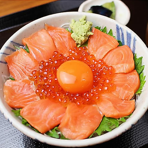 新鮮なマグロとぷちぷち食感のいくらを贅沢にのせた「きんぼし丼」は、海の幸を存分に楽しめる看板メニュー。彩り豊かに盛り付けられた丼は、見た目にも華やかで食欲をそそります。とろけるマグロの旨みと、いくらの濃厚な塩味がご飯と絶妙にマッチ。ひと口ごとに異なる食感と味わいが広がり、満足感たっぷりです。ランチでもディナーでも楽しめる、贅沢な海鮮丼の逸品です。