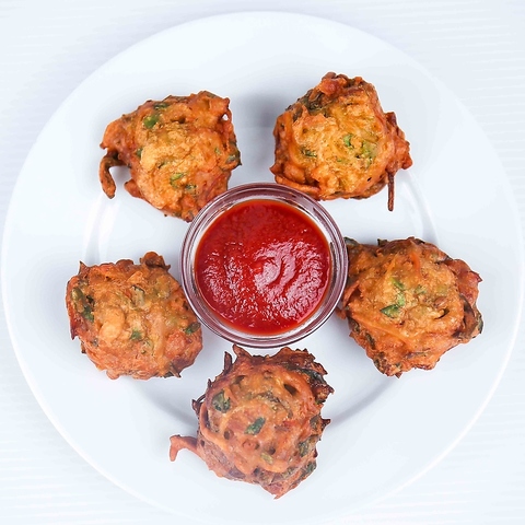 色んな野菜を使ったインド風天ぷら料理の盛り合わせ