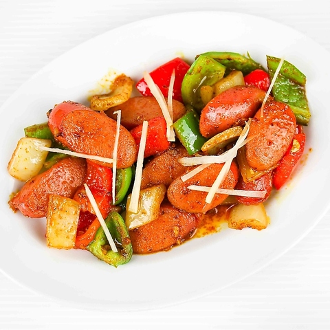 肉汁がジューシーなソーセージの炒め物です