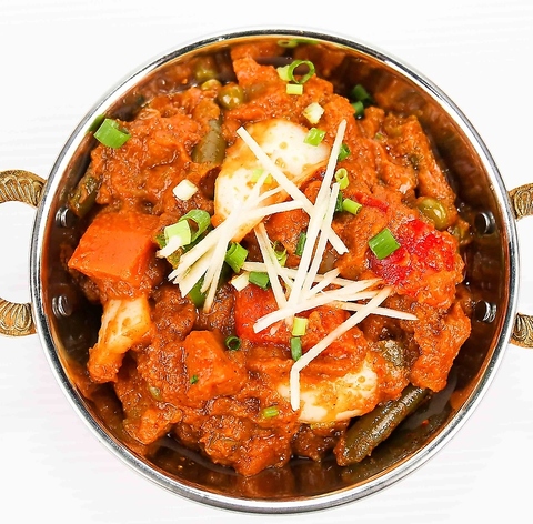 インドのカッテージチーズやキノコを使ったスパイスの効いたカレー