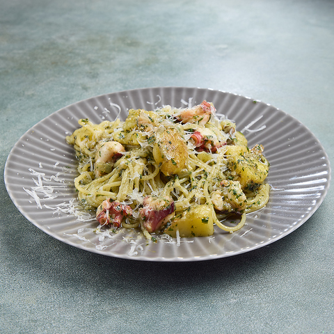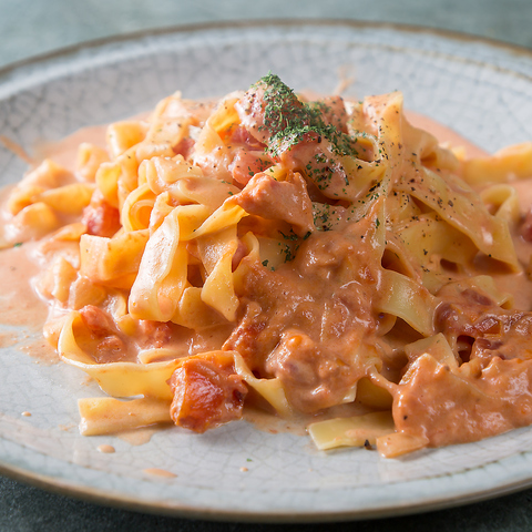宮崎の名物「地鶏の炭火焼き」を、ビストロスタイルのパスタにアレンジ!炭火でじっくり焼き上げた香ばしい地鶏の旨みが、特製ソースと絡み合い、一口ごとに広がる風味がやみつきに。「ここでしか味わえない一皿」として、リピーター多数の人気メニュー!ワインはもちろん、ジンとも相性抜群◎ぜひ一度ご賞味ください。