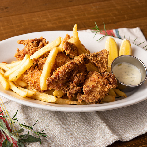 MMC*名物!バターミルクフライドチキンは、バターミルクでマリネすることにより中身はジューシー、衣はスパイスが効いてカリッと香ばしい食感。ランチソースを付けて召し上がれ♪