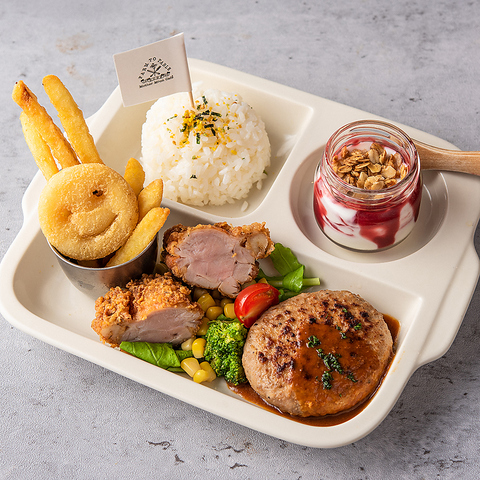 ハンバーグやフライドチキン・ポテトなど、おこさまが大好きなメニューを詰め込んだキッズプレート♪