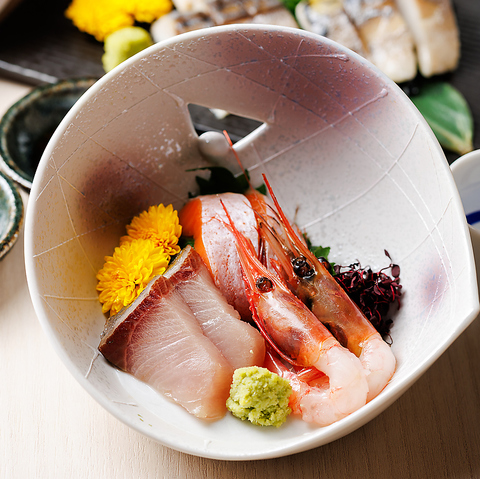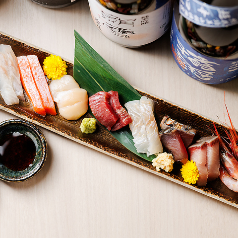「お造り8種盛り合わせ」や「よだれブリ」のほか、「甘エビきむち」などメインからおつまみまで種類豊富!ゆったり個室でお過ごしいただけます♪