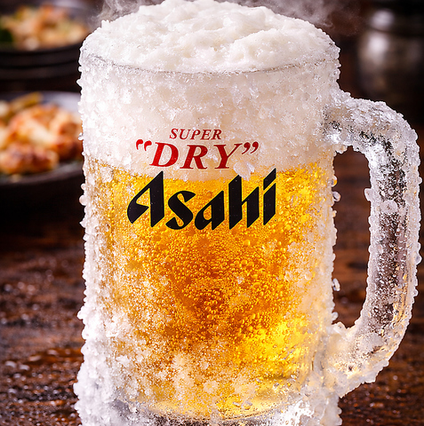 キンキンに極限まで凍らせたこだわりのジョッキでみんなから愛されてるスーパードライをお楽しみあれ♪